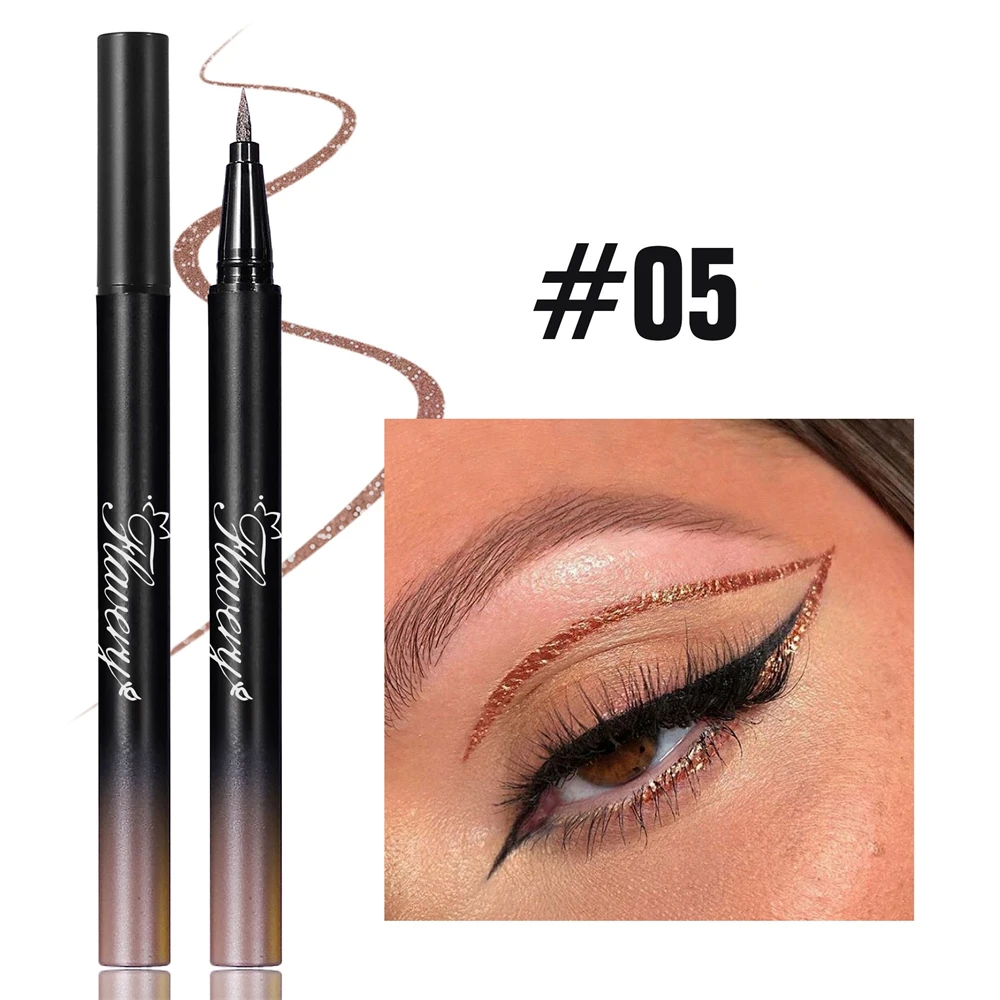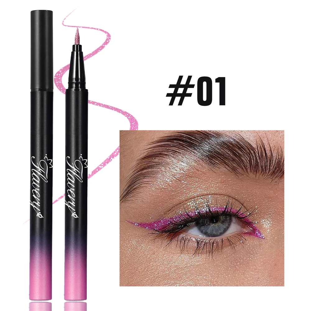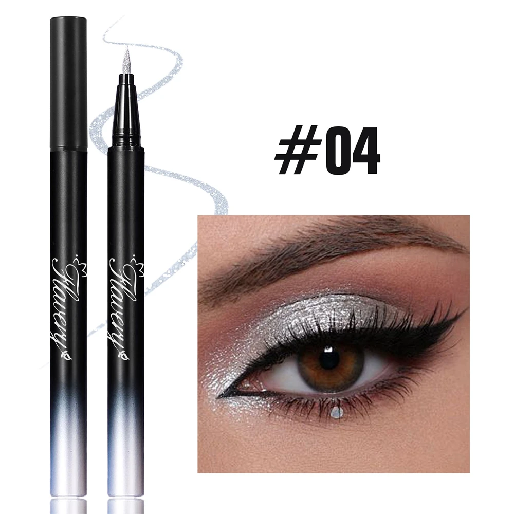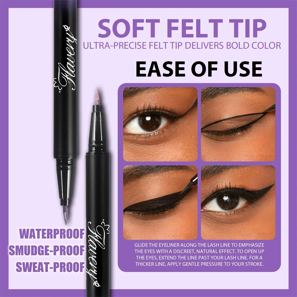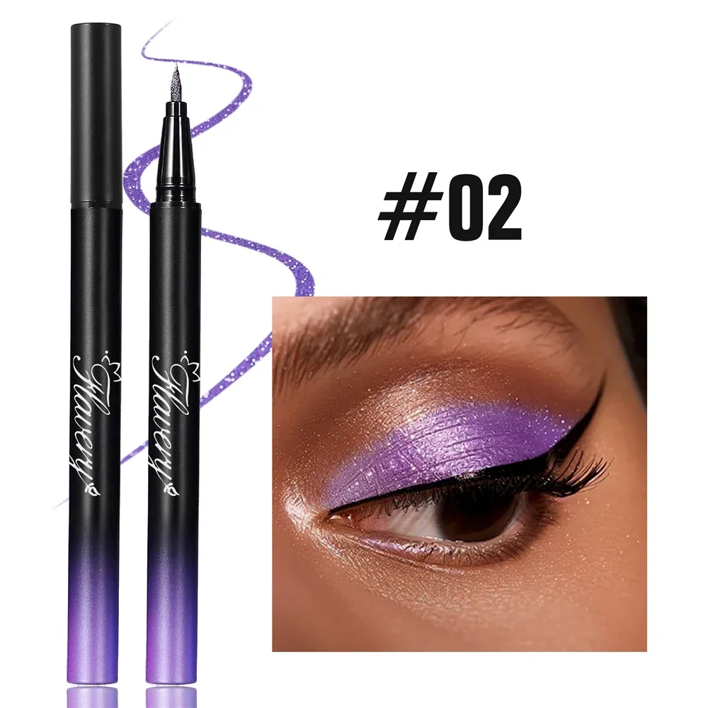 Pearlescent Smoked Black Purple Eyeliner Pen Glitter Metallic Shimmer Liquid Liner Waterproof Smudge Proof Rave Party Makeup