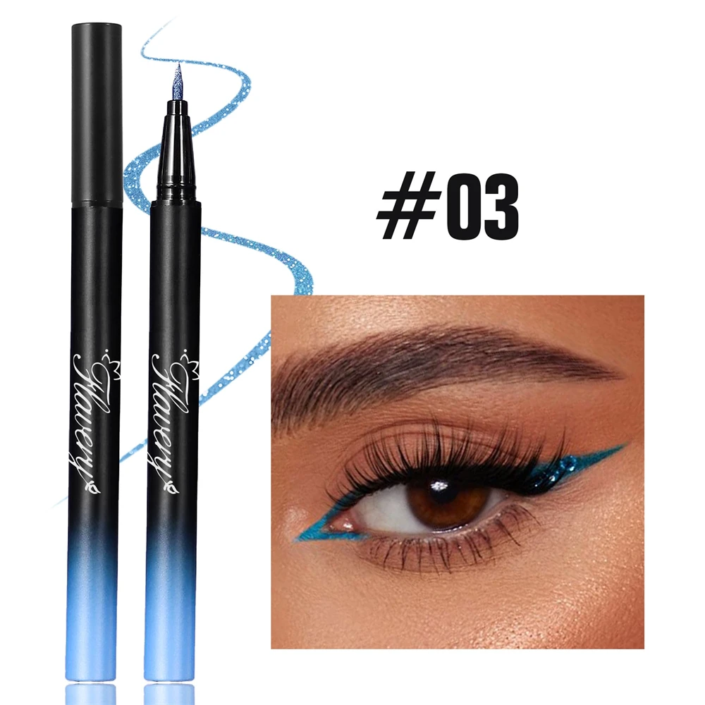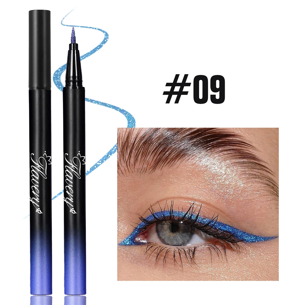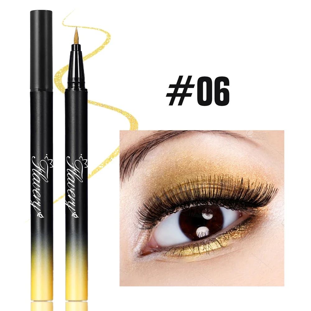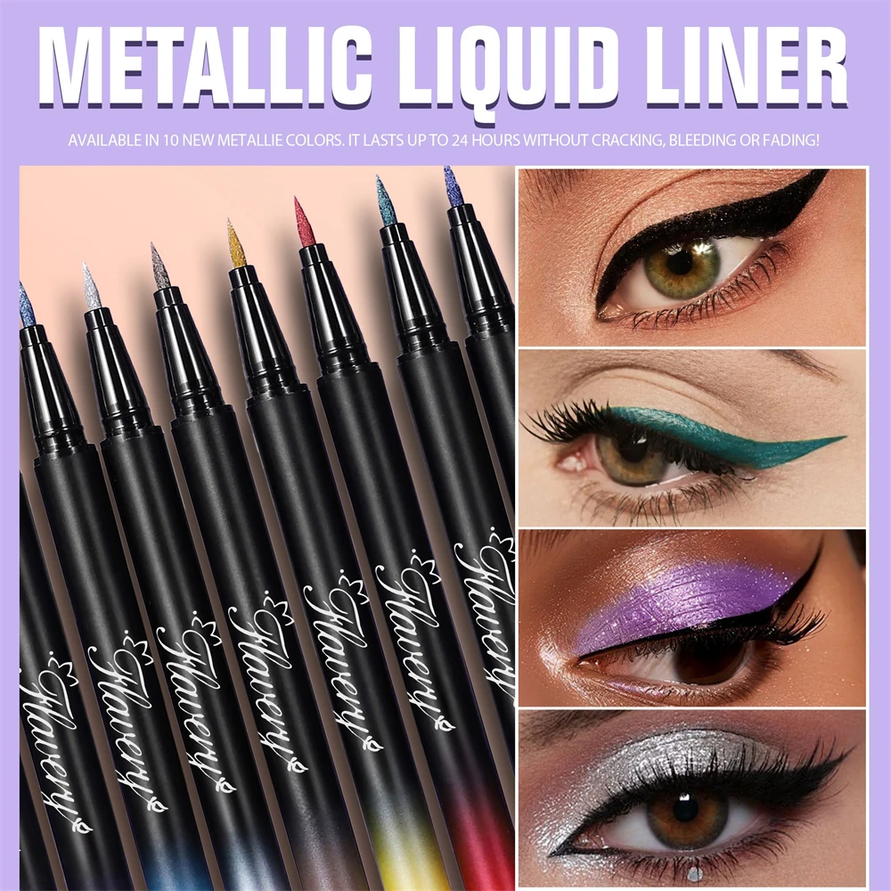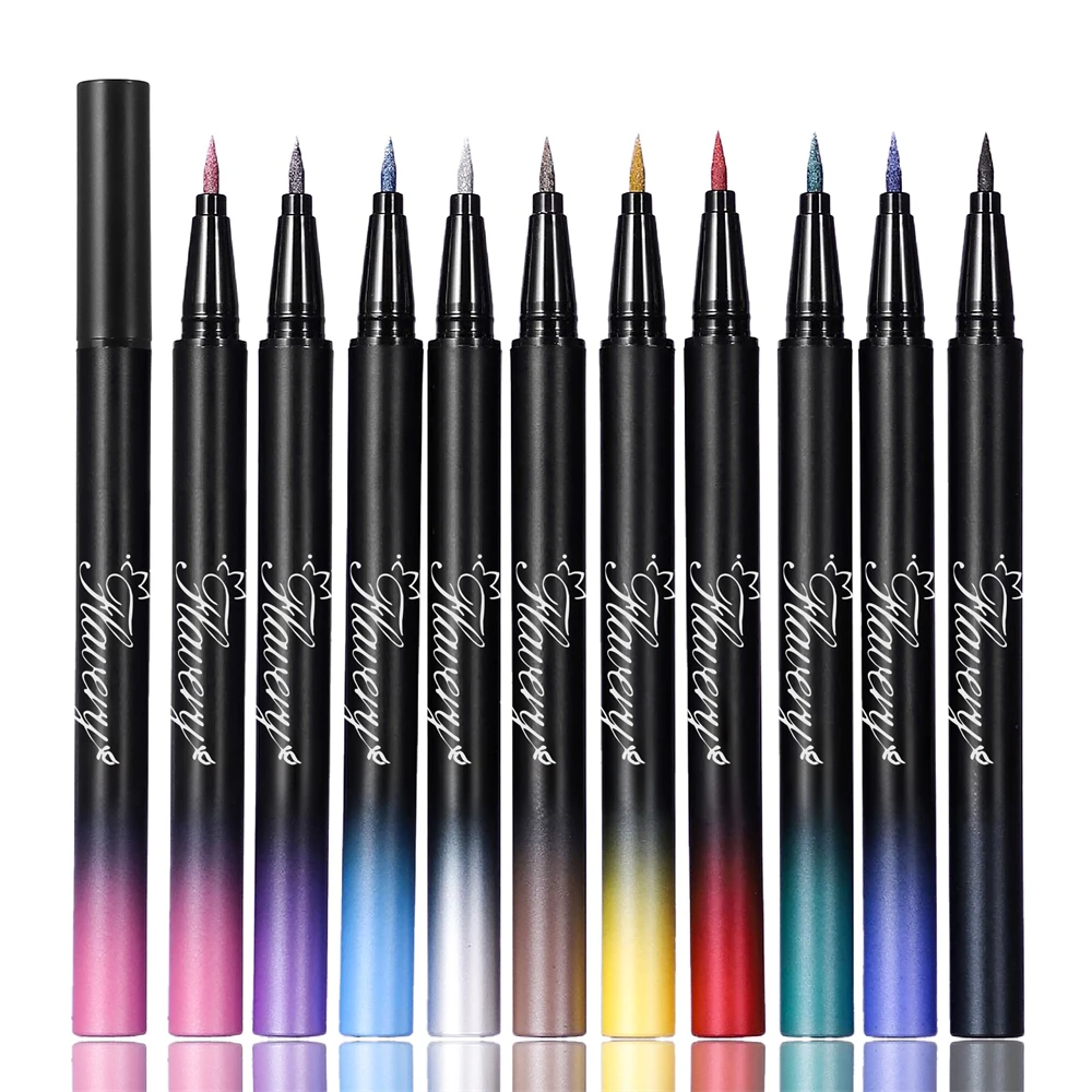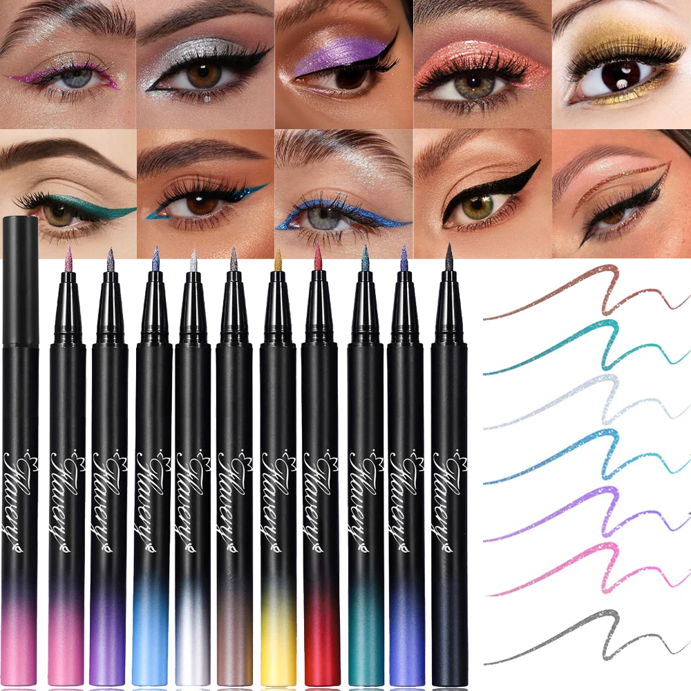 Pearlescent Smoked Black Purple Eyeliner Pen Glitter Metallic Shimmer Liquid Liner Waterproof Smudge Proof Rave Party Makeup